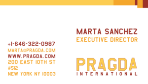 Pragda Stationary Set. Large mailing envelope, letterhead, business card (back and front), Mailing envelope back & front.