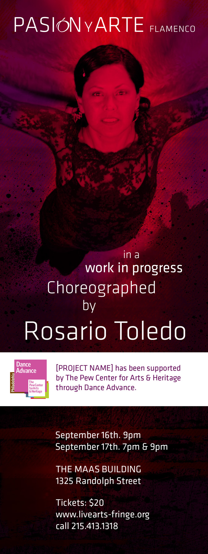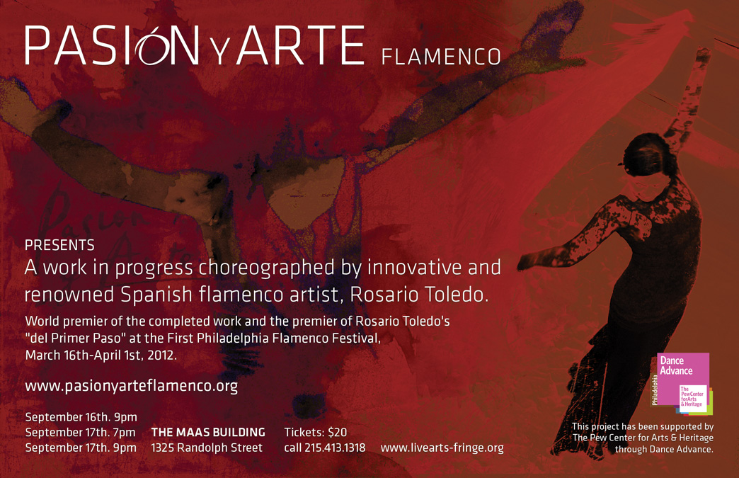 For this internationally renowned Dance troupe, I created, posters, postcards and other collateral materials, for a series of events, including these at the Philadelphia Fringe Festival, leading to the International Flamenco Festival, held in Philadelphia.