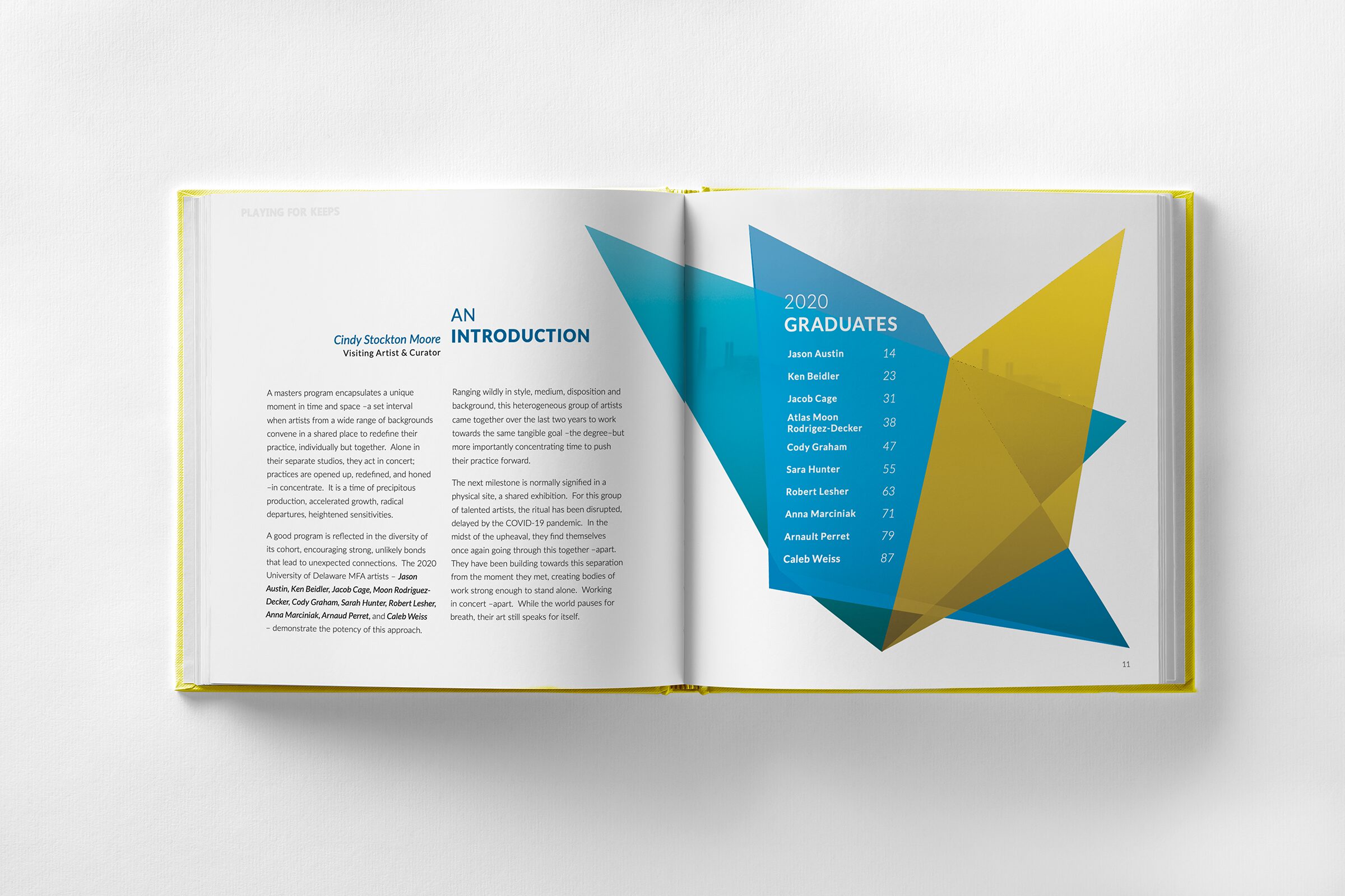 The University of Delaware’s Fine Arts & Design Department, commissioned me to design a catalogue for the Museum Exhibition, their graduating Master of Fine Arts Class of 2020.