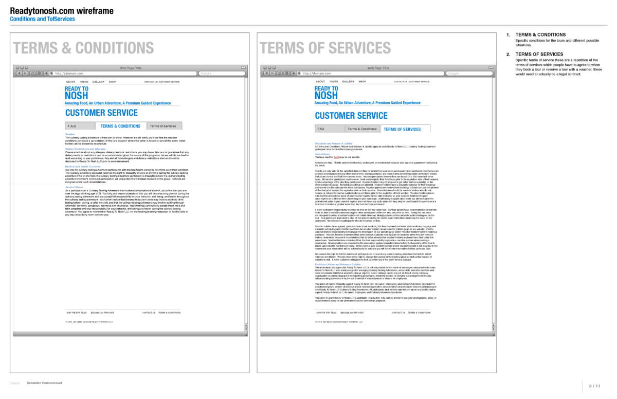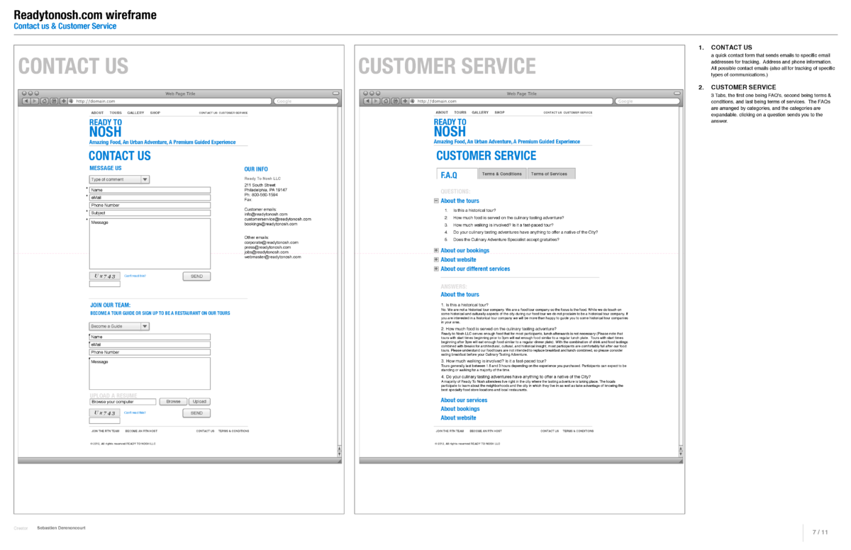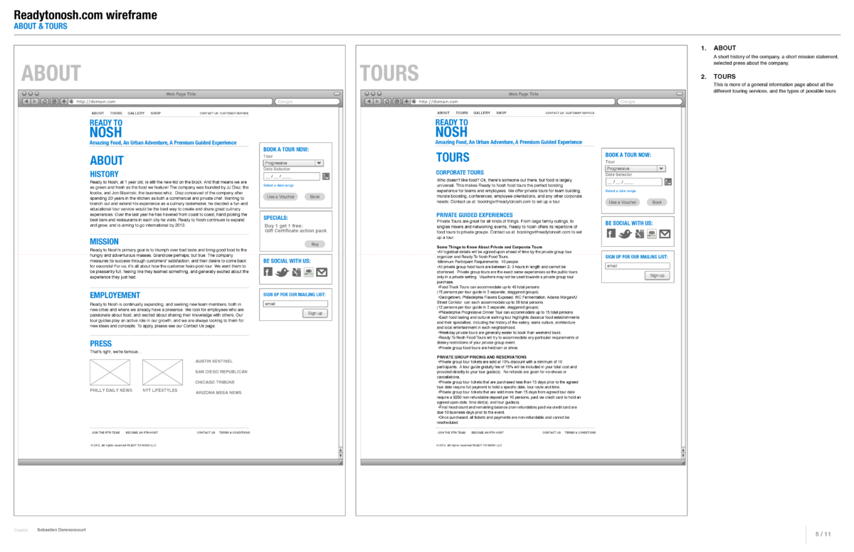Website wireframes and information architecture