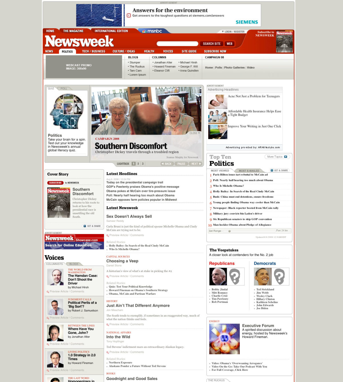 The new politics menu was very flexible in its form, but functioned somewhat as a sitemap, enabling users to quickly see the various options available to them while quickly reaching specific content.