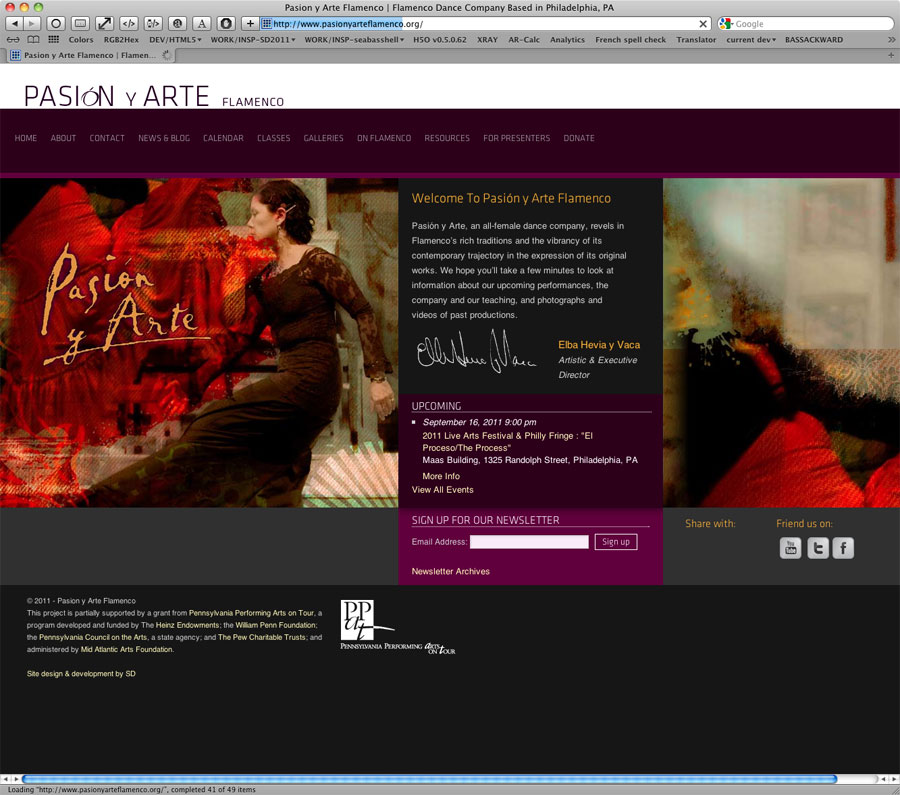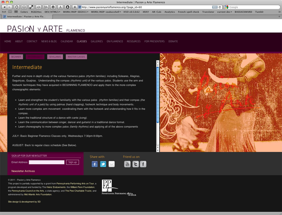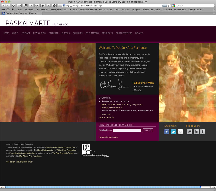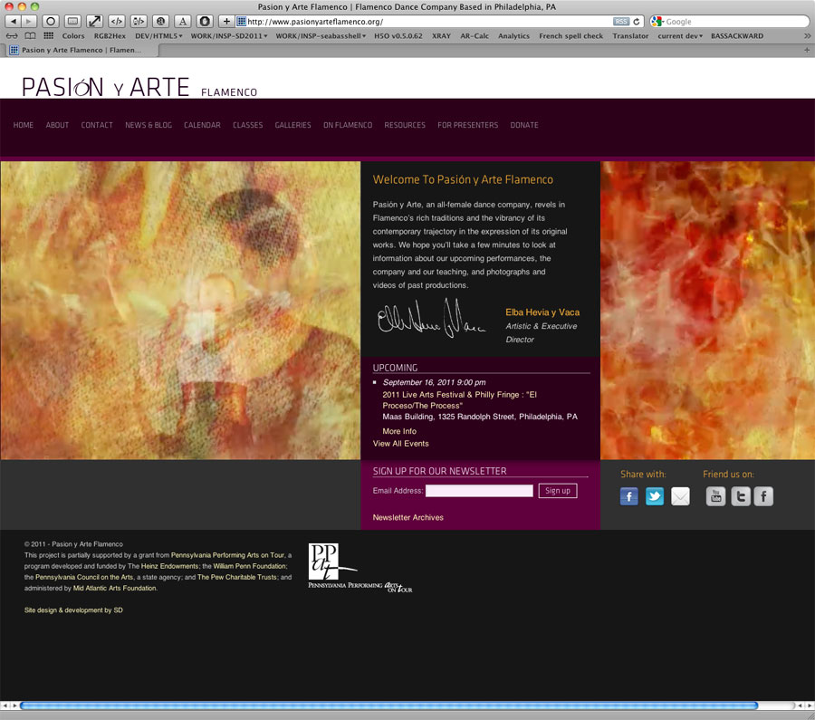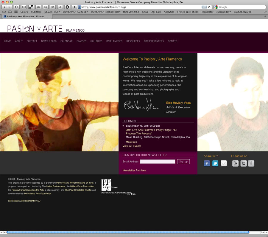 For the Pasión Y Arte Flamenco Dance troupe of Philadelphia, I created an informational website ahead of their hosting the 2012 Philadelphia International Flamenco Festival.