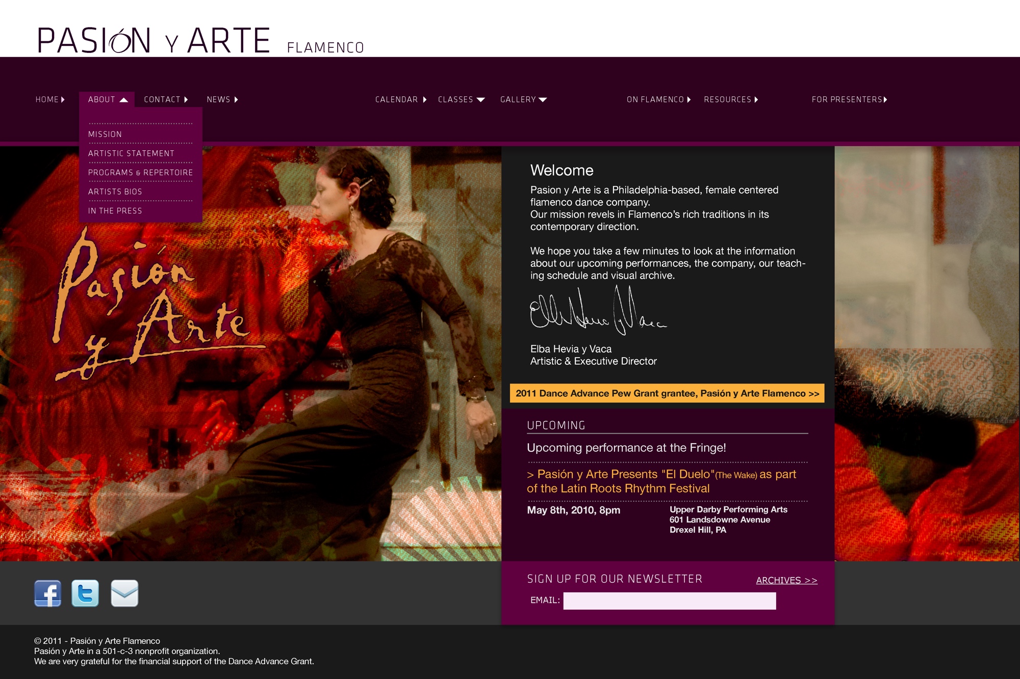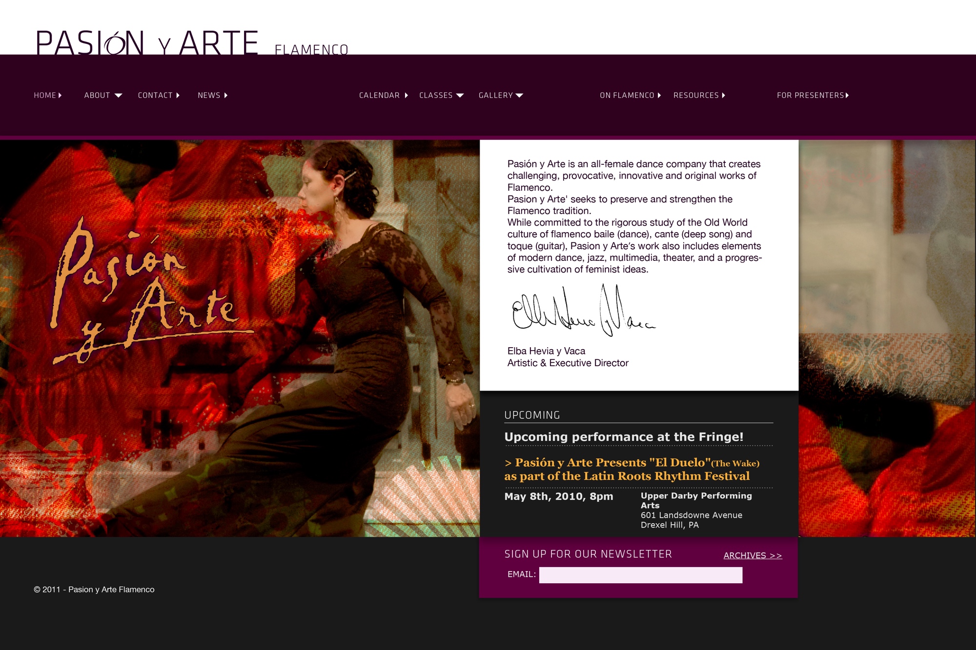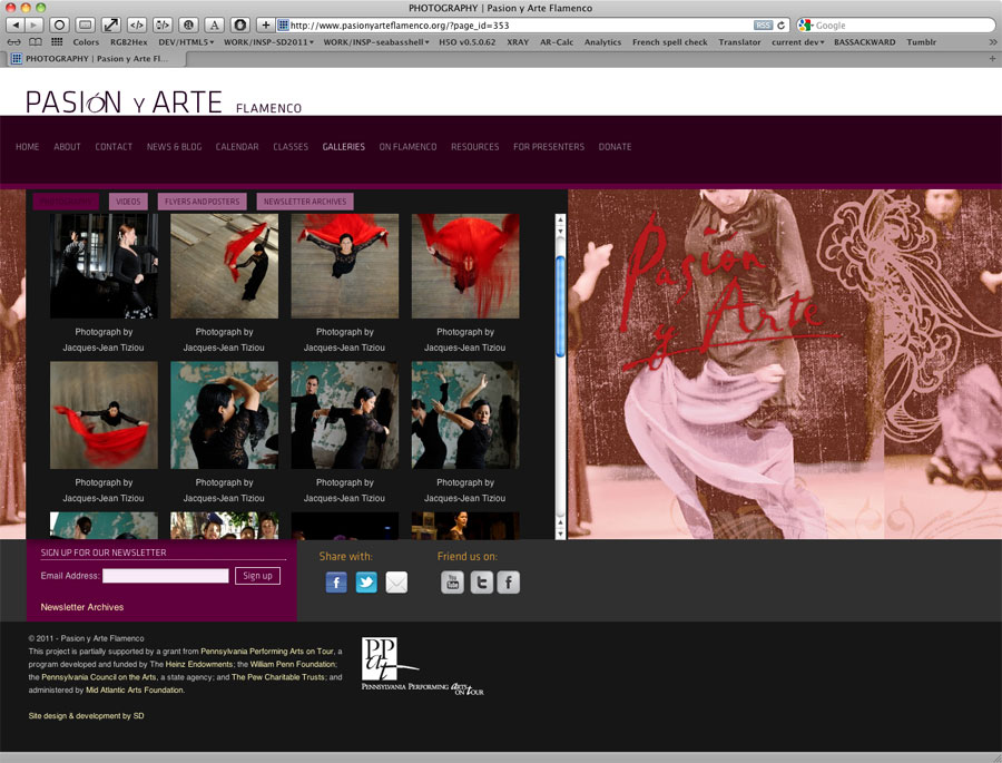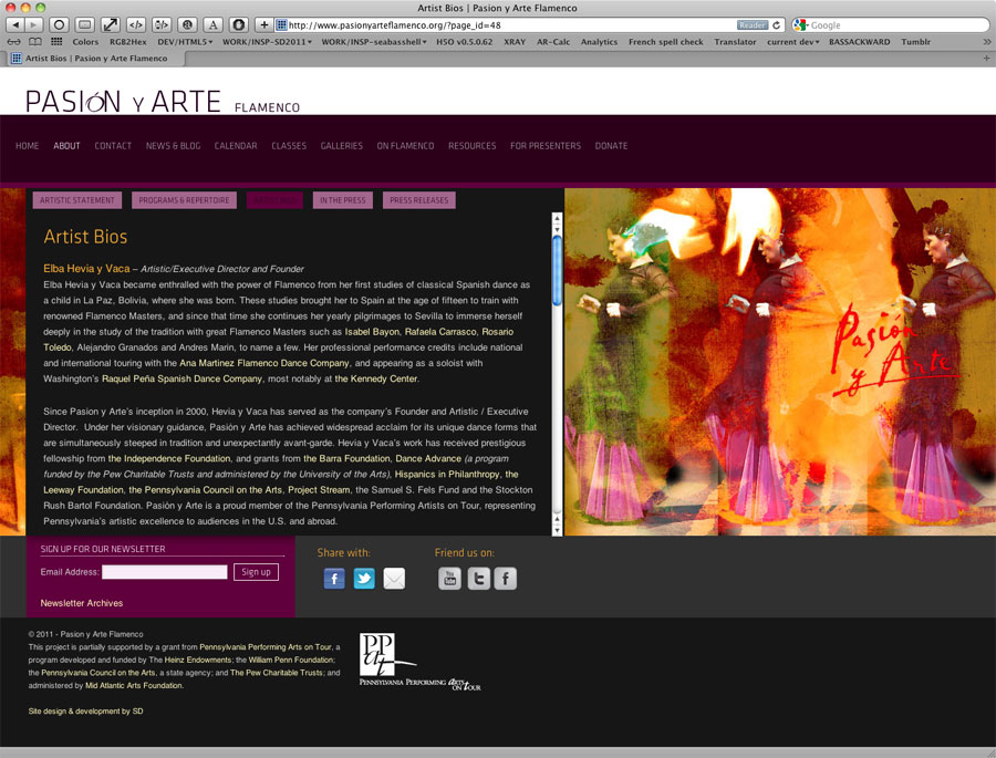 For the Pasión Y Arte Flamenco Dance troupe of Philadelphia, I created an informational website ahead of their hosting the 2012 Philadelphia International Flamenco Festival.