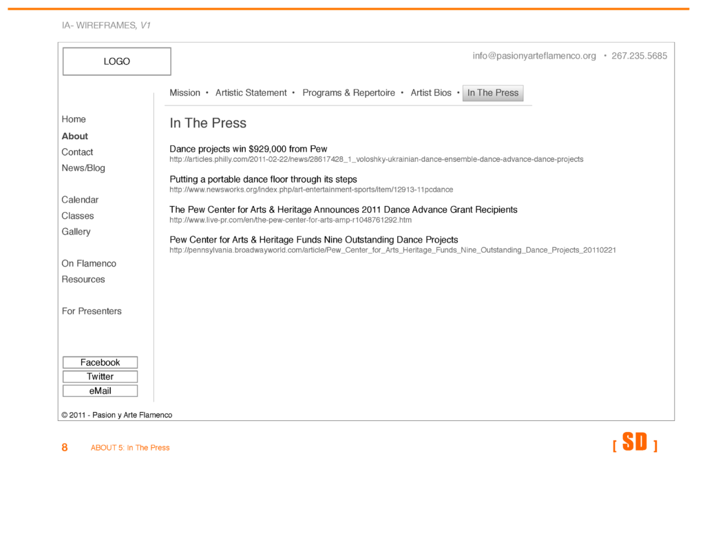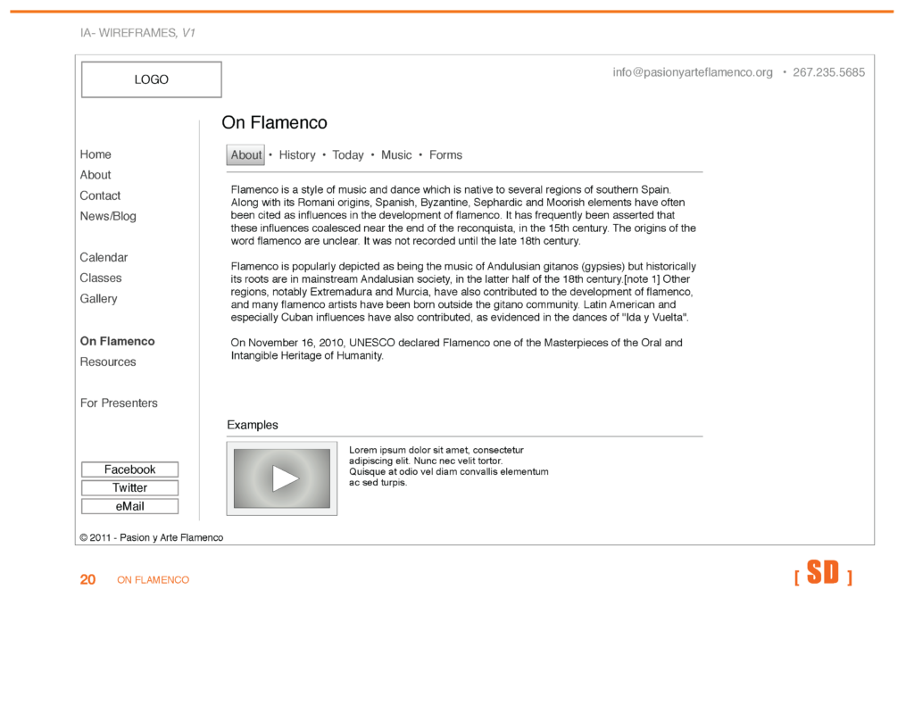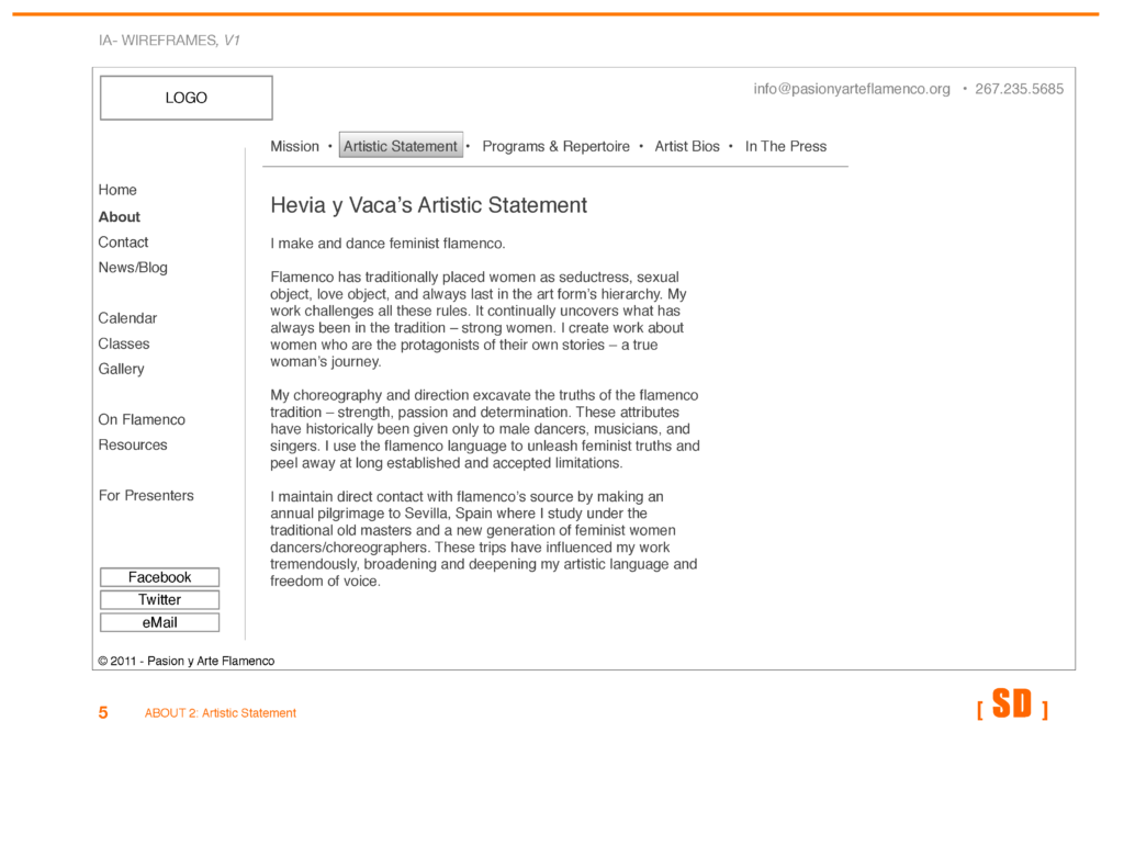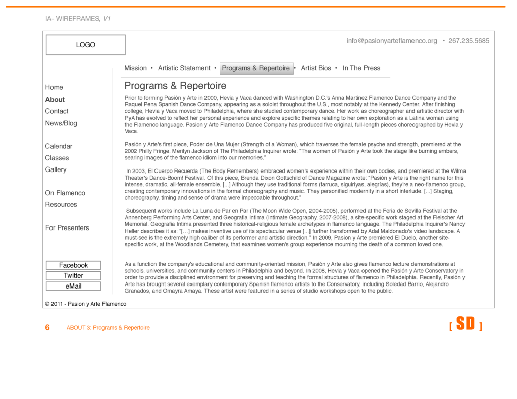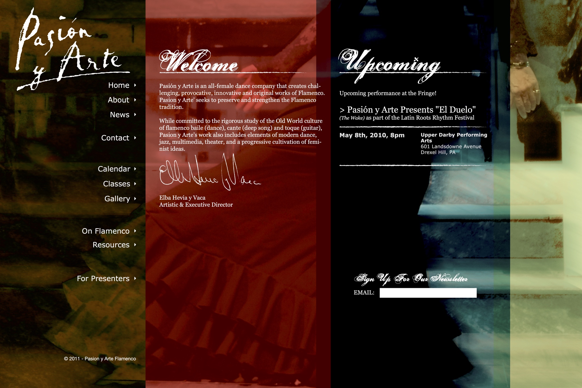 The site was designed to be an inspirational promotional piece for the 2012 Philadelphia International Flamenco Festival, conveying the intensity and excitement of both the troupe and flamenco as a whole.